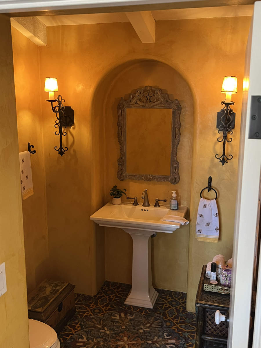 Venetian plaster is a unique finish that cannot be mimicked with any other product; it produces a warmth and richness that is unmatched. This is partly because, unlike paint, Venetian plaster is hand-troweled and then polished, creating a smooth, lustrous finish. Applied in thin layers, the ground-up marble dust in the plaster creates translucency and gives the appearance of depth and “movement.” Viewed from different angles, Venetian plaster can produce a glossy, mirror-like finish. There are also more matte-finish, rustic Venetian plasters that lend themselves well to classic Spanish and Italianate architecture.